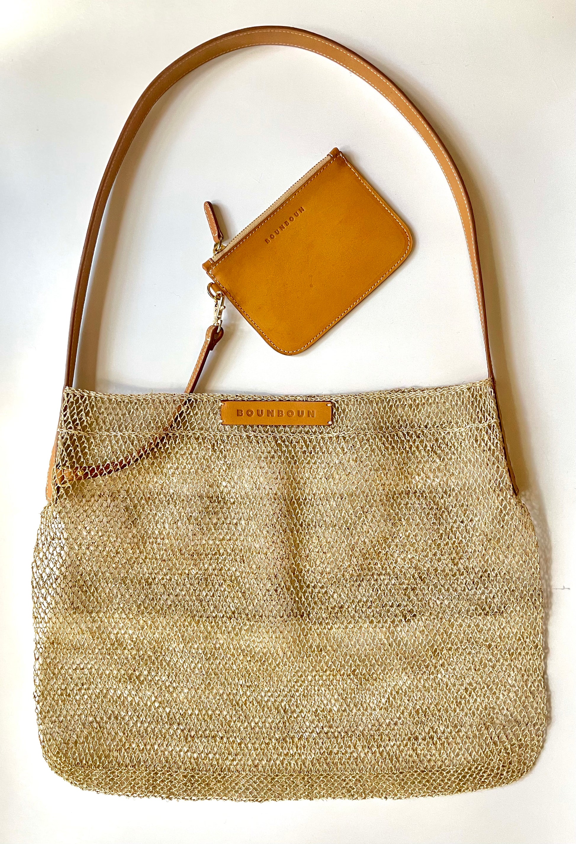 BounBoun Classic Mesh is hand-woven from an organic jungle vine fiber by indigenous tribes of northern Laos. Finished with a natural cowhide leather strap and clutch insert.